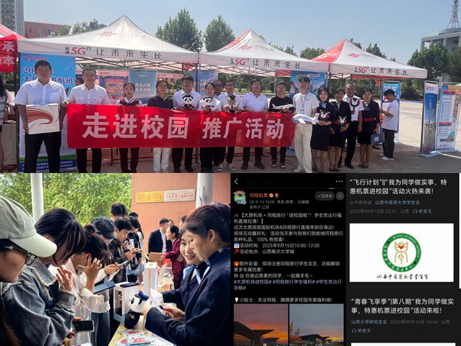 在淡季市場(chǎng)背景下,太原機(jī)場(chǎng)精準(zhǔn)鎖定青年群體,9月中旬聯(lián)合中國、深、山、昆、東、海、南、龍江航空及同程旅行等空公司和OTA平臺(tái),在山西傳媒學(xué)院、山西中醫(yī)藥大學(xué)、山西大學(xué)(塢城校區(qū))、山西大學(xué)(東山校區(qū))開展“我為師生辦實(shí)事、機(jī)票進(jìn)校園”系列活動(dòng)。此次活動(dòng)獲得了廣泛關(guān)注,同程旅行通過官方微博積極宣傳,山西中醫(yī)藥大學(xué)公眾號(hào)、山西大學(xué)公眾號(hào)也發(fā)布了相關(guān)推文,共同擴(kuò)大了活動(dòng)影響力,有效激發(fā)了青年學(xué)子的出行熱情。此舉不僅彰顯了太原機(jī)場(chǎng)“以旅客為中心”的服務(wù)理念,更積極踐行社會(huì)責(zé)任,助力構(gòu)建青年友好型航空樞紐。